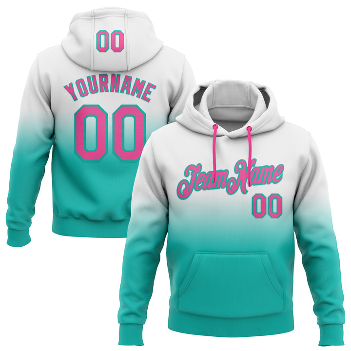 Custom Stitched White Pink-Aqua Fade Fashion Sports Pullover Sweatshirt Hoodie