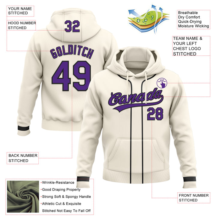 Custom Stitched Cream Purple-Black Baseball Pullover Sweatshirt Hoodie
