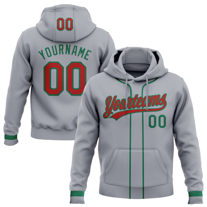 Custom Stitched Gray Red-Kelly Green Baseball Pullover Sweatshirt Hoodie