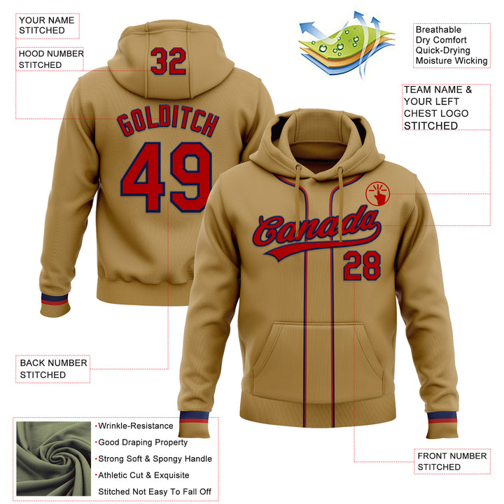 Custom Stitched Old Gold Red-Navy Baseball Pullover Sweatshirt Hoodie