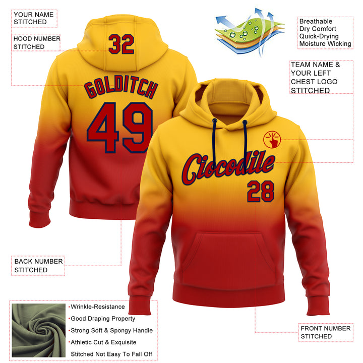 Custom Stitched Gold Red-Navy Fade Fashion Sports Pullover Sweatshirt Hoodie