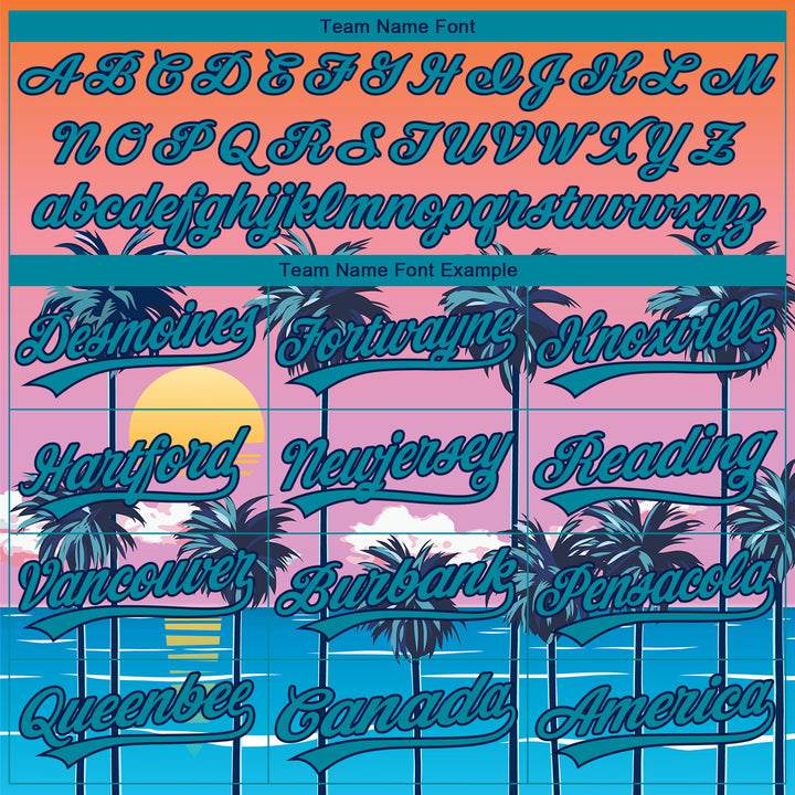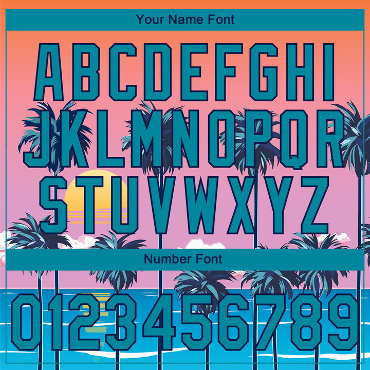 Custom Stitched Orange Teal Pink Blue-Navy 3D Sun Beach Hawaii Palm Trees Sports Pullover Sweatshirt Hoodie