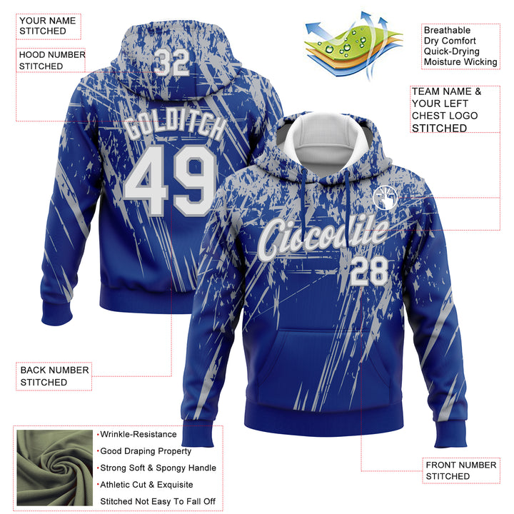 Custom Stitched Royal White-Gray 3D Pattern Design Splash Grunge Art Sports Pullover Sweatshirt Hoodie
