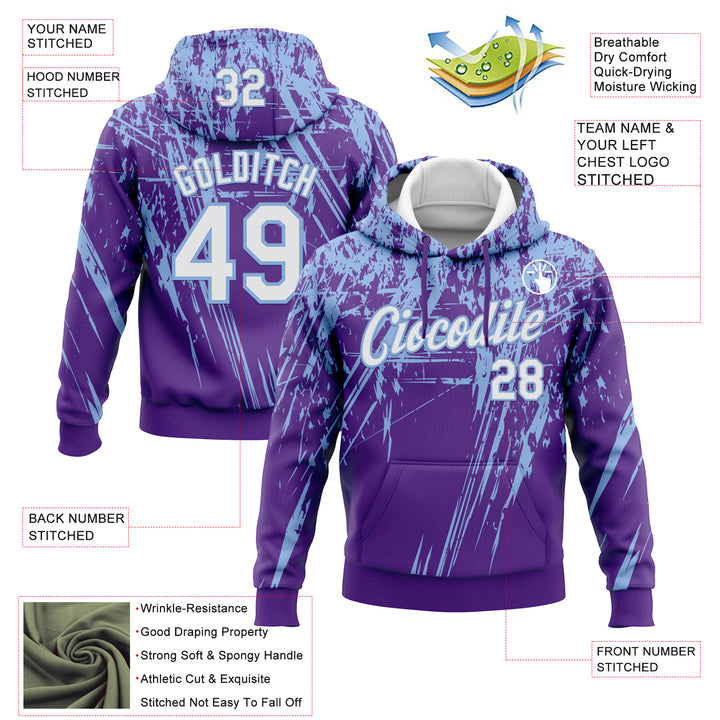Custom Stitched Purple White-Light Blue 3D Pattern Design Splash Grunge Art Sports Pullover Sweatshirt Hoodie