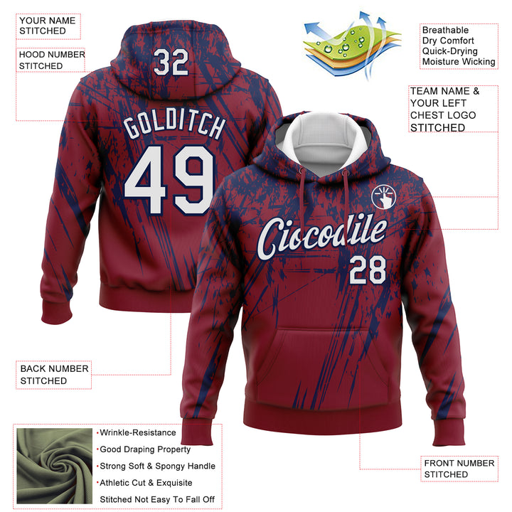Custom Stitched Crimson White-Navy 3D Pattern Design Splash Grunge Art Sports Pullover Sweatshirt Hoodie