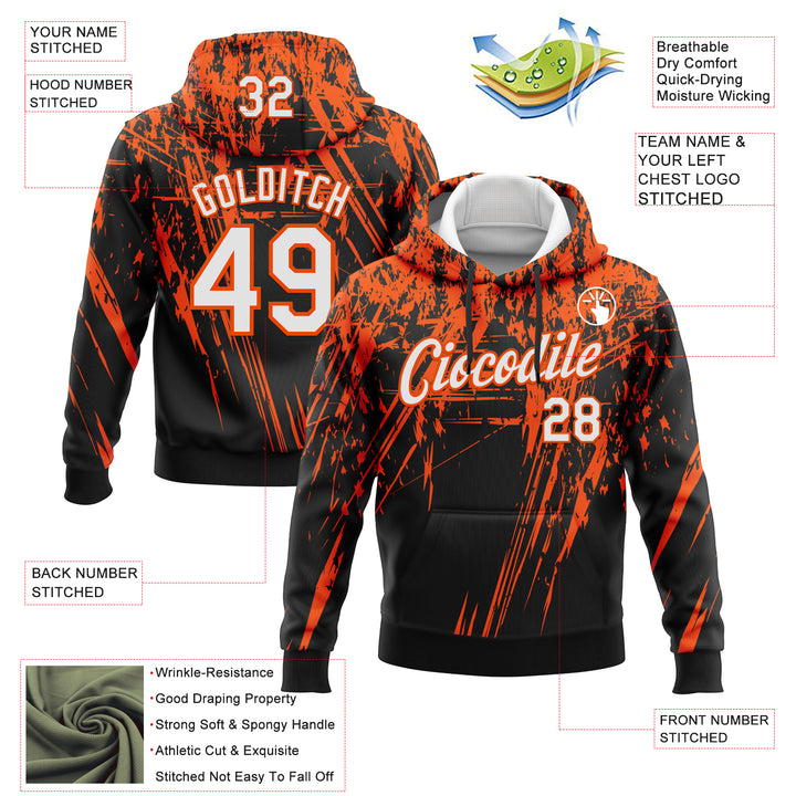 Custom Stitched Black White-Orange 3D Pattern Design Splash Grunge Art Sports Pullover Sweatshirt Hoodie