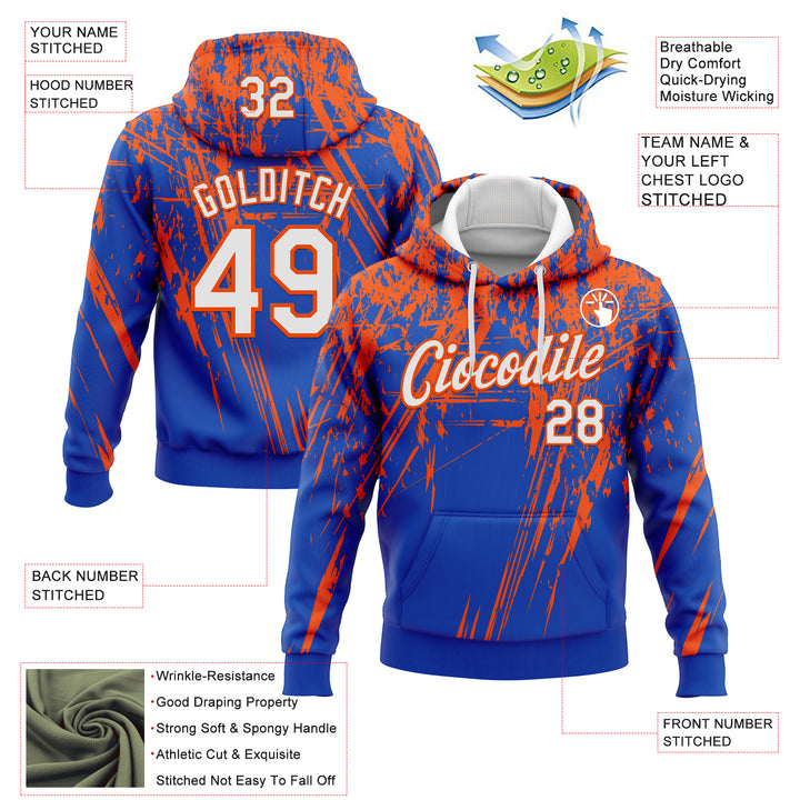 Custom Stitched Thunder Blue White-Orange 3D Pattern Design Splash Grunge Art Sports Pullover Sweatshirt Hoodie