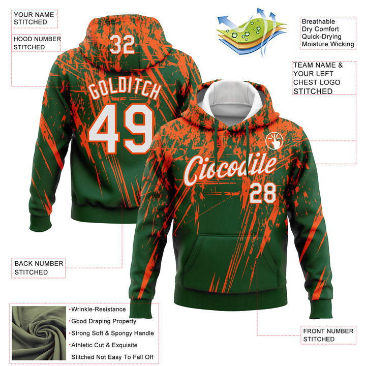 Custom Stitched Green White-Orange 3D Pattern Design Splash Grunge Art Sports Pullover Sweatshirt Hoodie