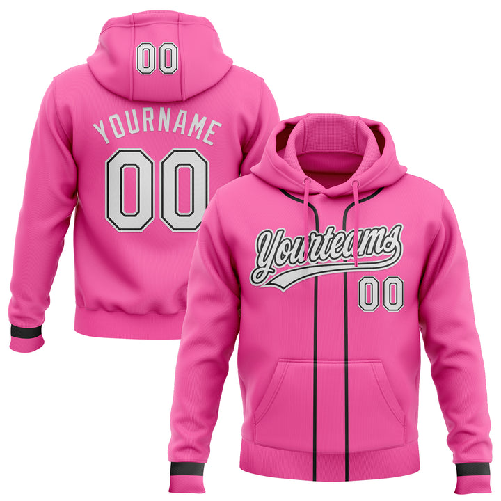 Custom Stitched Pink White-Black Baseball Pullover Sweatshirt Hoodie