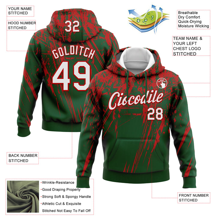 Custom Stitched Green White-Red 3D Pattern Design Splash Grunge Art Sports Pullover Sweatshirt Hoodie
