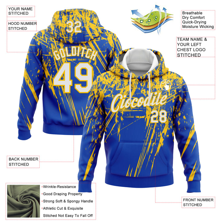 Custom Stitched Thunder Blue White-Yellow 3D Pattern Design Splash Grunge Art Sports Pullover Sweatshirt Hoodie
