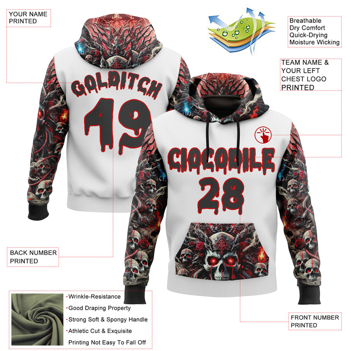 Custom White Black-Red 3D Skull Hell Sports Pullover Sweatshirt Hoodie
