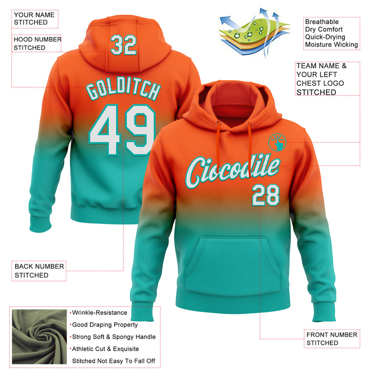 Custom Stitched Orange White-Aqua Fade Fashion Sports Pullover Sweatshirt Hoodie