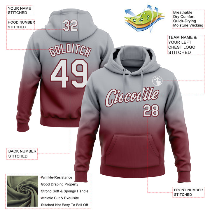 Custom Stitched Gray White-Burgundy Fade Fashion Sports Pullover Sweatshirt Hoodie