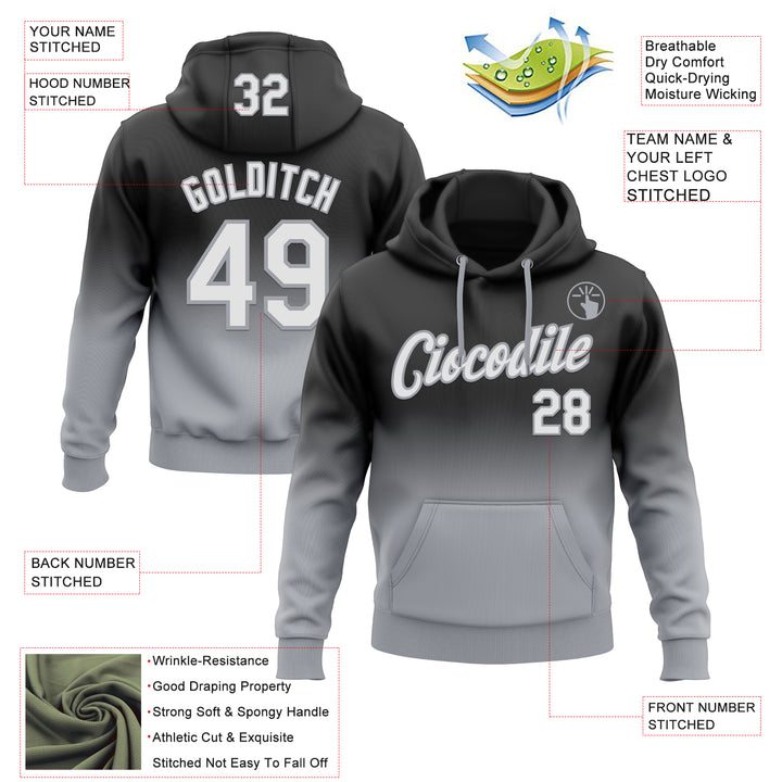 Custom Stitched Black White-Gray Fade Fashion Sports Pullover Sweatshirt Hoodie