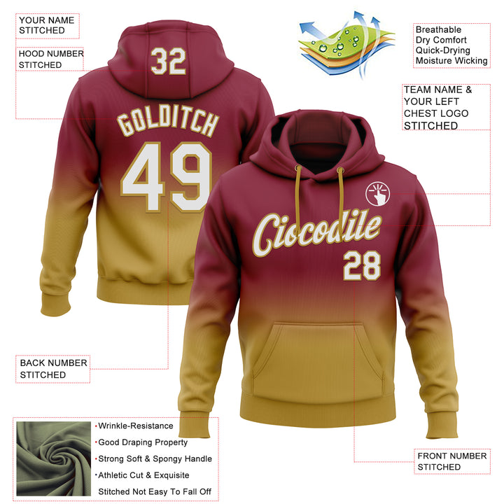 Custom Stitched Crimson White-Old Gold Fade Fashion Sports Pullover Sweatshirt Hoodie