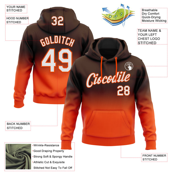 Custom Stitched Brown White-Orange Fade Fashion Sports Pullover Sweatshirt Hoodie