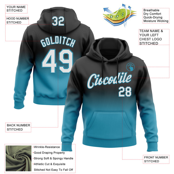 Custom Stitched Black White-Panther Blue Fade Fashion Sports Pullover Sweatshirt Hoodie
