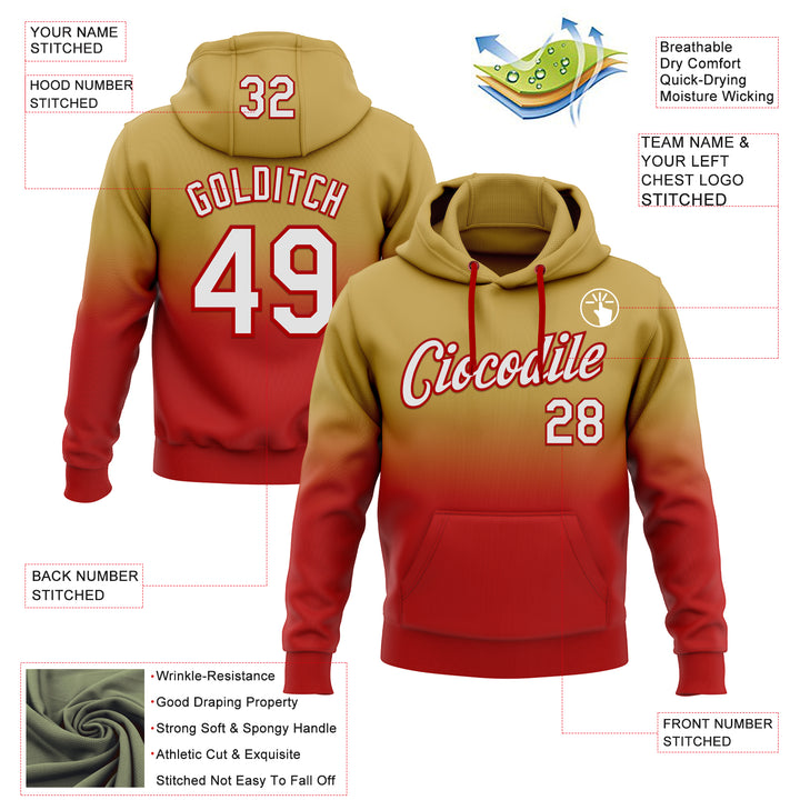 Custom Stitched Old Gold White-Red Fade Fashion Sports Pullover Sweatshirt Hoodie