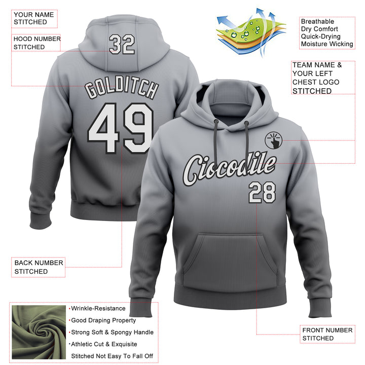 Custom Stitched Gray White Steel Gray-Black Fade Fashion Sports Pullover Sweatshirt Hoodie