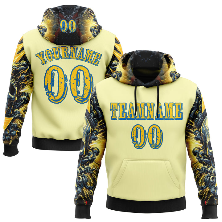 Custom Yellow Blue 3D Skull Psychedelic Sports Pullover Sweatshirt Hoodie