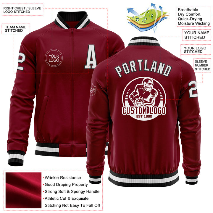 Custom Crimson White-Black Bomber Varsity Letterman Zipper Jacket