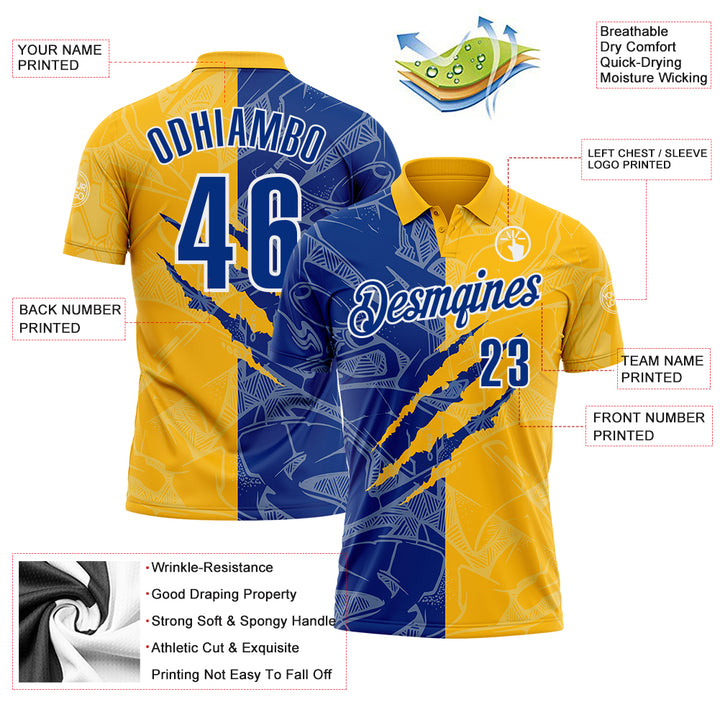 Custom Graffiti Pattern Royal Gold-White 3D Scratch Performance Polo Shirt