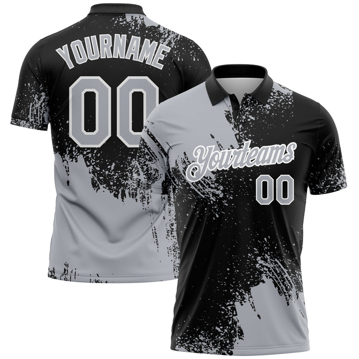 Custom Gray Black-White 3D Pattern Design Abstract Brush Stroke Performance Polo Shirt