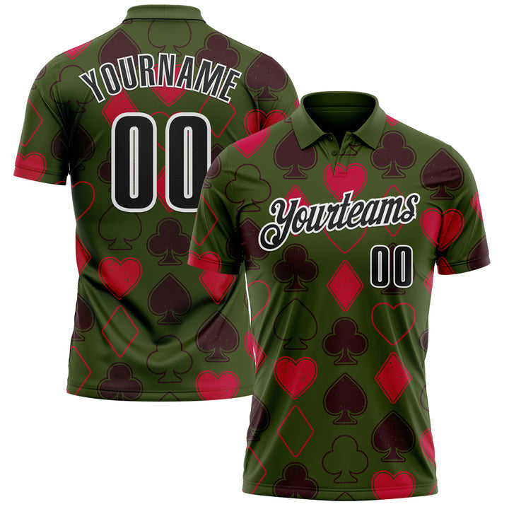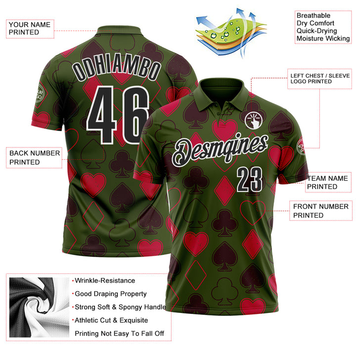 Custom Green Black-White 3D Gambling Poker Performance Polo Shirt