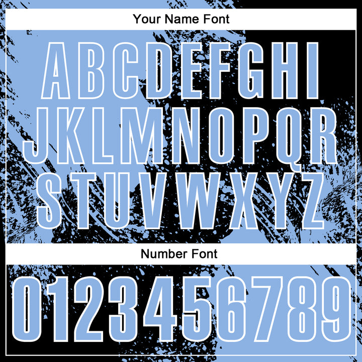 Custom Light Blue Black-White 3D Pattern Design Abstract Brush Stroke Performance Polo Shirt