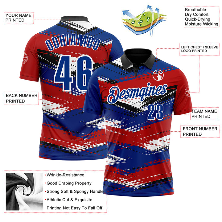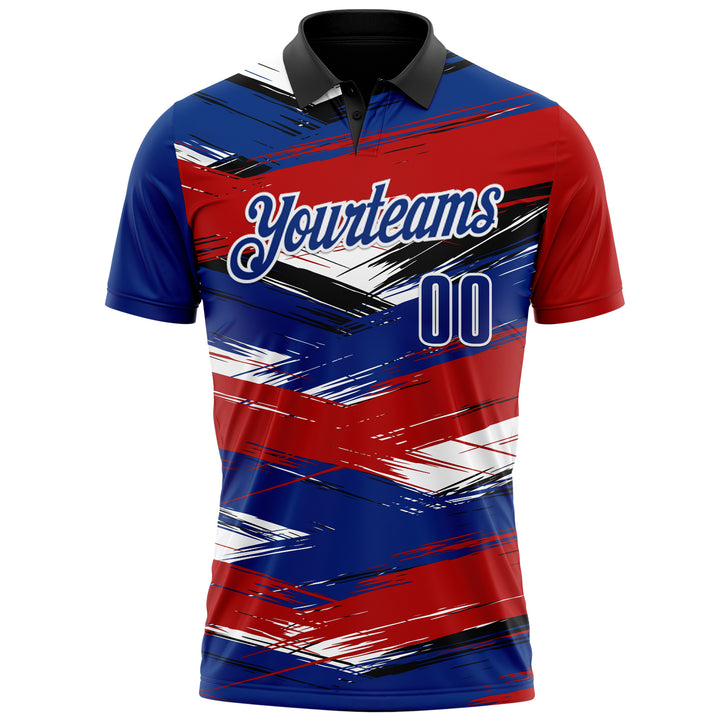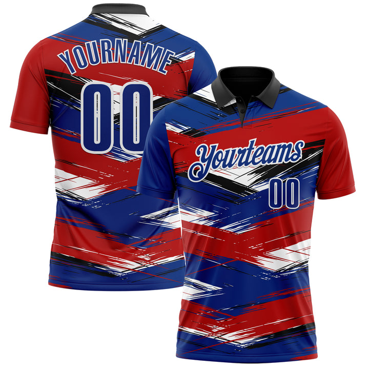 Custom Red Royal-Black 3D Bowling Abstract Grunge Art Performance Polo Shirt