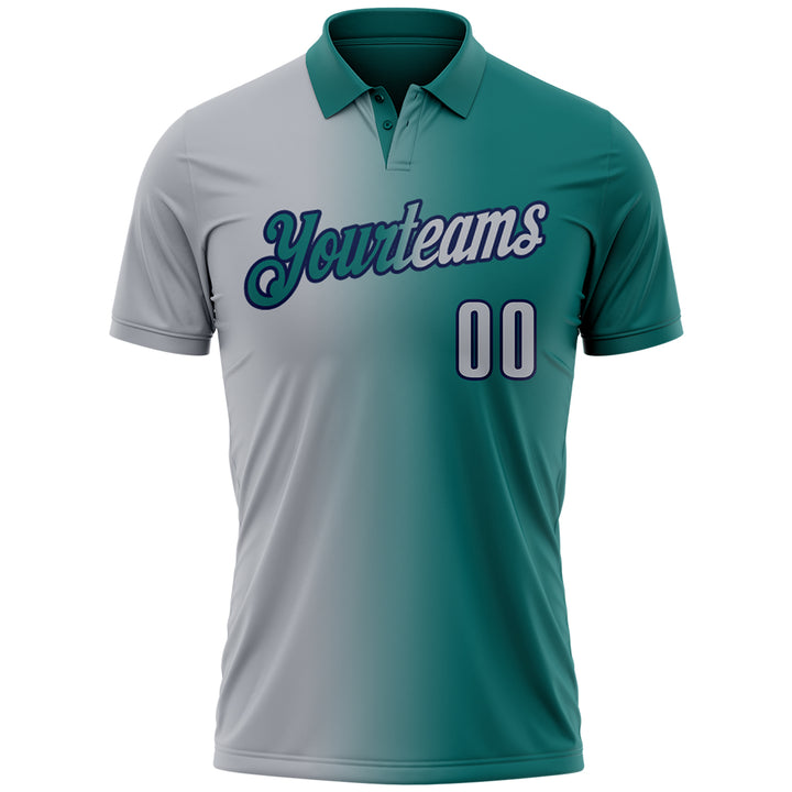 Custom Teal Gray-Navy 3D Gradient Fashion Performance Polo Shirt