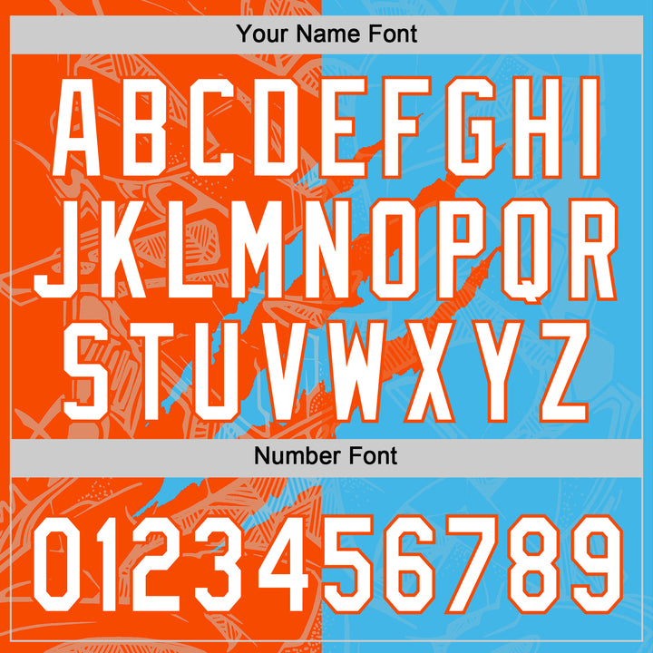 Custom Graffiti Pattern White Sky Blue-Orange 3D Scratch Two-Button Unisex Softball Jersey