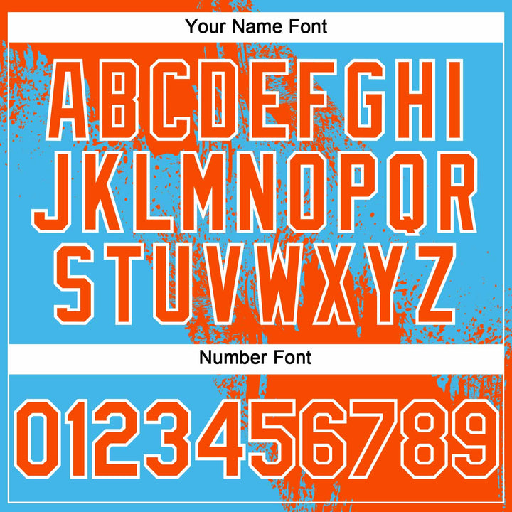 Custom Orange Sky Blue-White 3D Pattern Abstract Brush Stroke Two-Button Unisex Softball Jersey