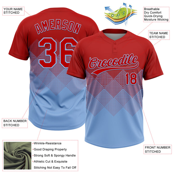 Custom Red Light Blue 3D Gradient Square Shape Two-Button Unisex Softball Jersey