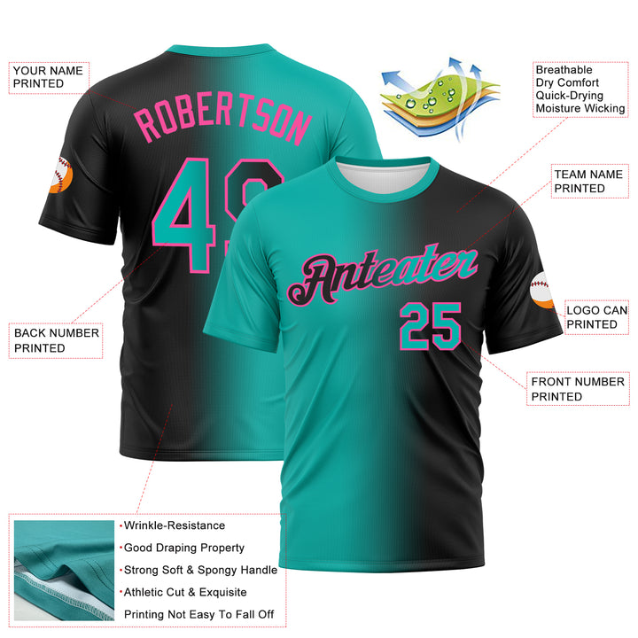 Custom Black Aqua-Pink Gradient Fashion Performance T-Shirt