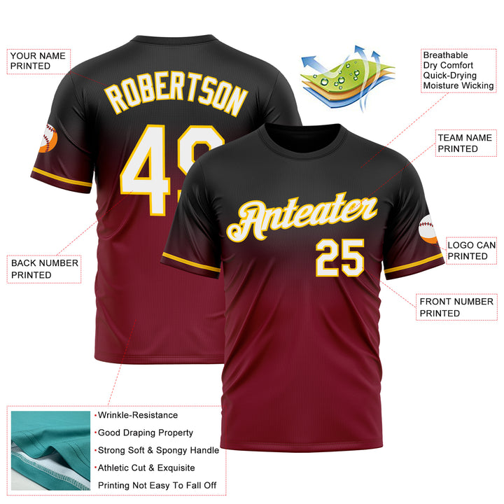 Custom Black Crimson-Yellow Fade Fashion Performance T-Shirt