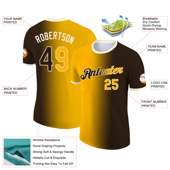 Custom Brown Gold-Cream Gradient Fashion Performance T-Shirt