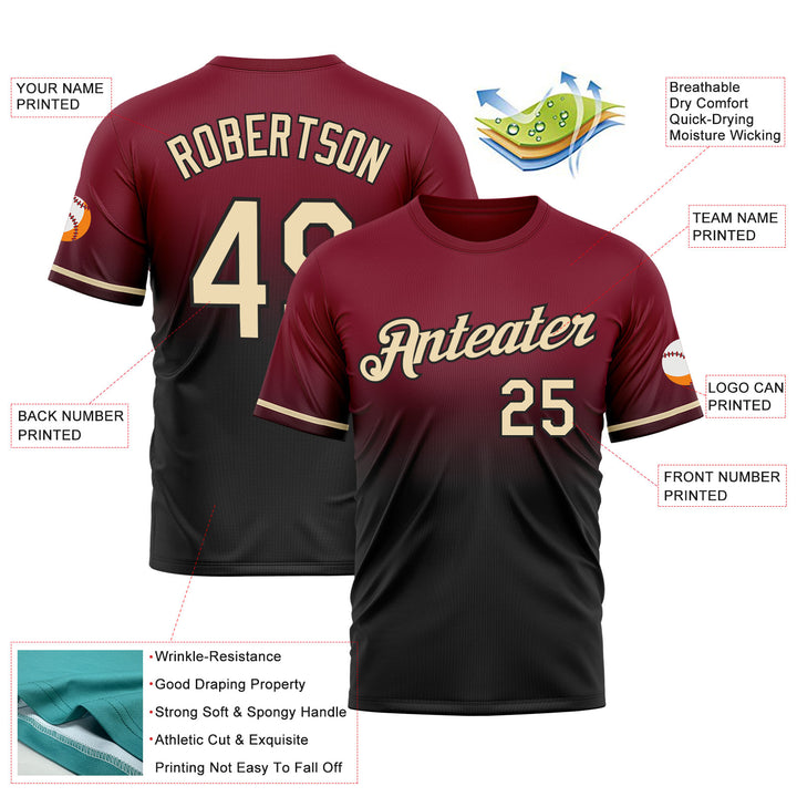 Custom Crimson Cream-Black Fade Fashion Performance T-Shirt