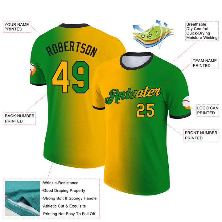 Custom Grass Green Gold-Black Gradient Fashion Performance T-Shirt