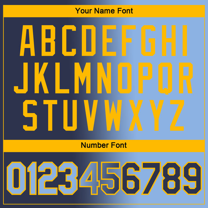 Custom Navy Light Blue-Gold Gradient Fashion Performance T-Shirt