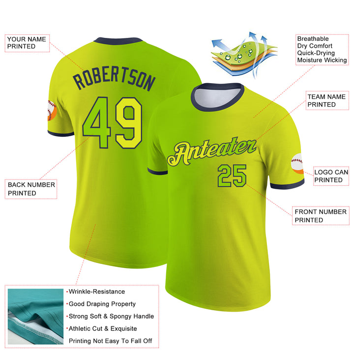 Custom Neon Yellow Neon Green-Navy Gradient Fashion Performance T-Shirt