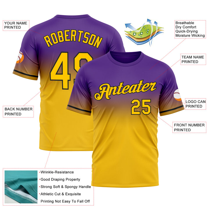 Custom Purple Yellow-Black Fade Fashion Performance T-Shirt