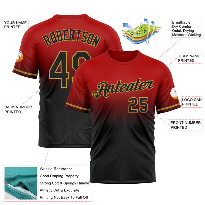 Custom Red Black-Old Gold Fade Fashion Performance T-Shirt
