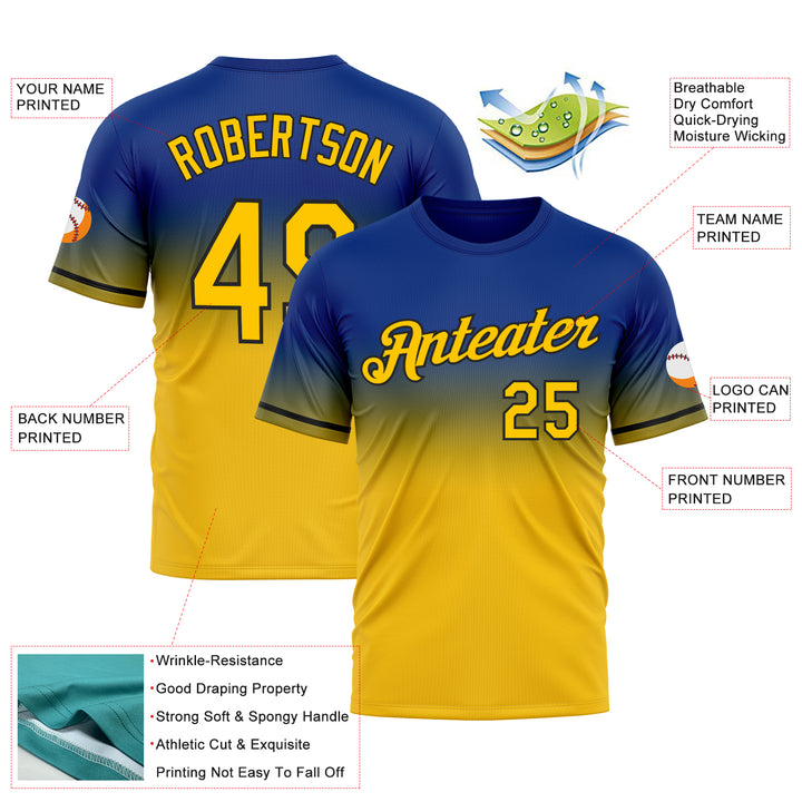 Custom Royal Yellow-Black Fade Fashion Performance T-Shirt