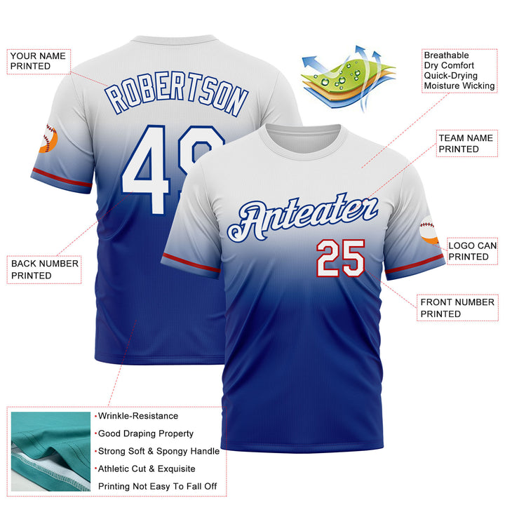 Custom White Royal-Red Fade Fashion Performance T-Shirt