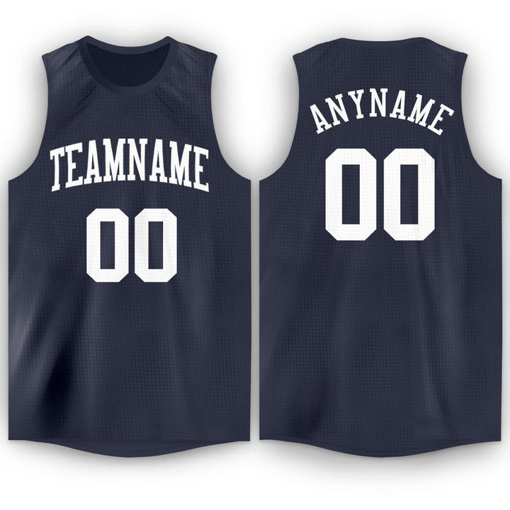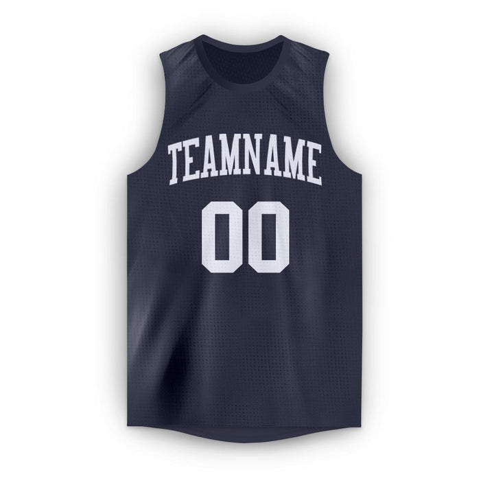 Custom Navy White Round Neck Basketball Jersey