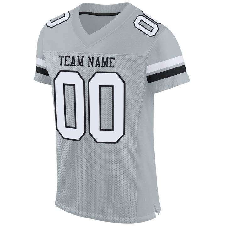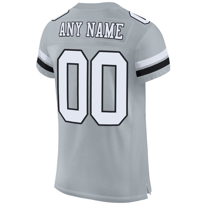 Custom Silver White-Black Mesh Authentic Football Jersey