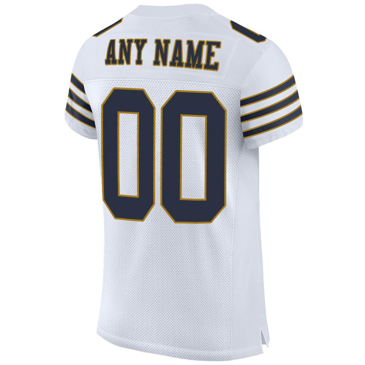 Custom White Navy-Old Gold Mesh Authentic Football Jersey