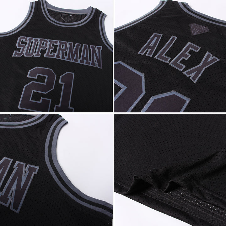 Custom Black Black-Steel Gray Authentic Throwback Basketball Jersey